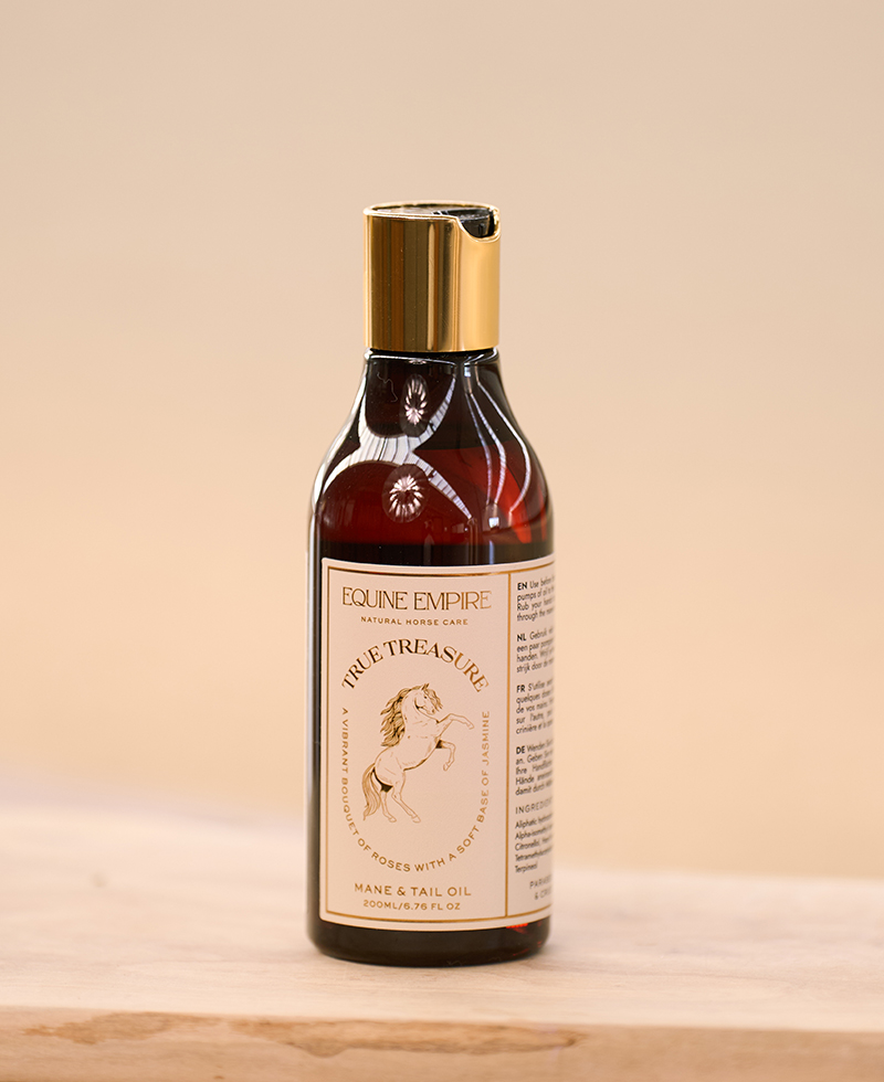 The mane & tail oil smooths your horses hair and is excellent for a shiny finish. The oil is enriched with Argan- and Coconut oil.